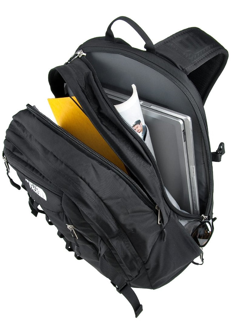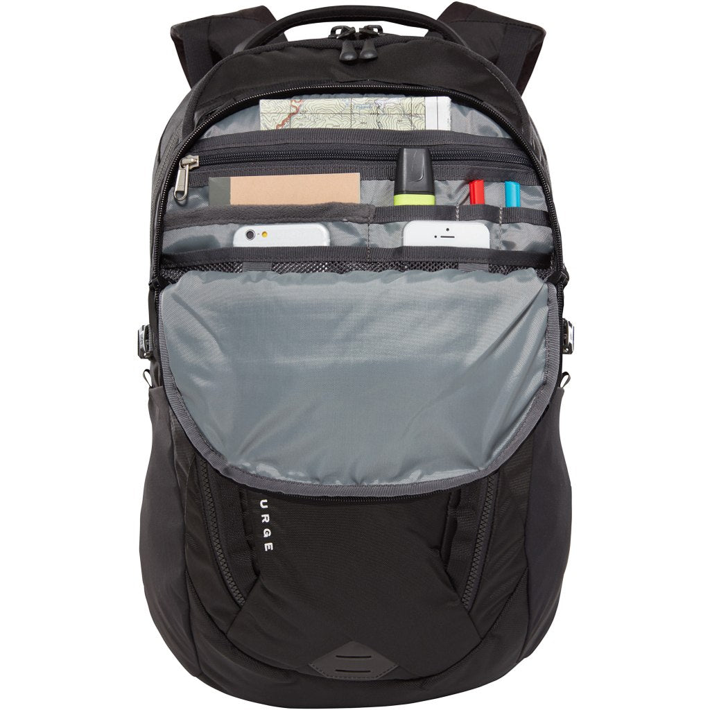 Met de Surge van The North Face koop je de ideale combinatie tussen urban en outdoor. De Surge is gemaakt van duurzaam 400D nylon, dus je hoeft er niet voorzichtig mee om te gaan. Dankzij de voorgevormde schouderbanden, een gevoerd achterpand en het The North Face FlexVent™-ophangsysteem is hij zelfs vol geladen comfortabel mee te nemen. De inhoud van 31 liter bestaat uit een groot hoofdcompartiment, een voorvak met een gewatteerde tablethoes met ritszakken, en een 15" laptophoes. Drie extra met fleece gevoerde vakken bieden zachte bescherming voor je zonnebril, telefoon en koptelefoon. Natuurlijk ontbreken ook de waterfles vakken aan de zijkant niet.